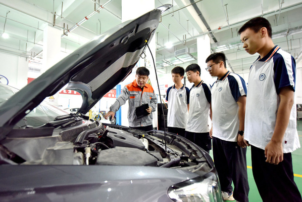 2024年6月7日,河北省邢台市威县职业技术教育中心教师在指导学生学习汽车维修技术。新华社记者 王晓 摄