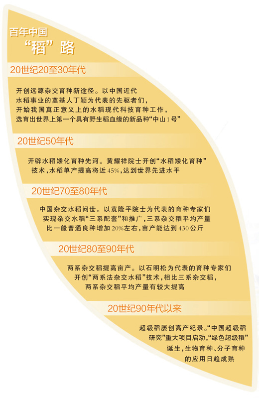 我国水稻实现了矮化育种、三系法杂交育种、两系法杂交育种等多重技术突破,从亩产不足100公斤提升至800公斤,单产、总产均居全球首位。中国稻走向世界,离不开我国育种科学家的杰出贡献:“中国稻作之父”丁颖院士选育出世界上第一个具有野生稻血缘的新品种“中山1号”;黄耀祥院士育成第一个半矮秆水稻品种“广场矮”,开启了水稻矮化育种的先河;“杂交水稻之父”袁隆平院士等培育出“三系配套”杂交水稻;石明松先生等又让“两系杂交稻”技术单产明显提升。近年来,我国扎实推进藏粮于地、藏粮于技,水稻生产在追求高产优质的同时,开始推广旱地水稻和再生稻,更加注重资源节约和环境保护,推动全球农业的可持续发展。