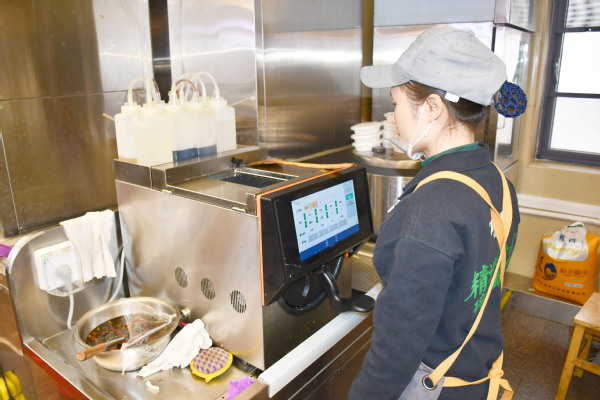 柳园餐厅AI机器人出餐区,该区域以技术赋能打造智慧餐饮新模式,配备扫码/刷校园卡双模式终端、300 份容量恒温存储区及全流程溯源系统。验收组详细询问设备运维与菜品补给细节,要求持续优化语音引导、库存预警功能,让智能服务兼具效率与温度。
