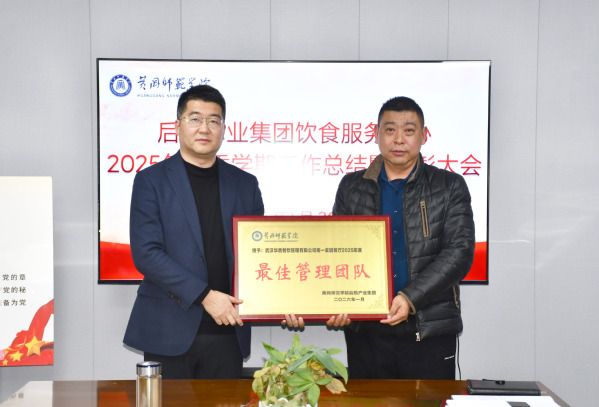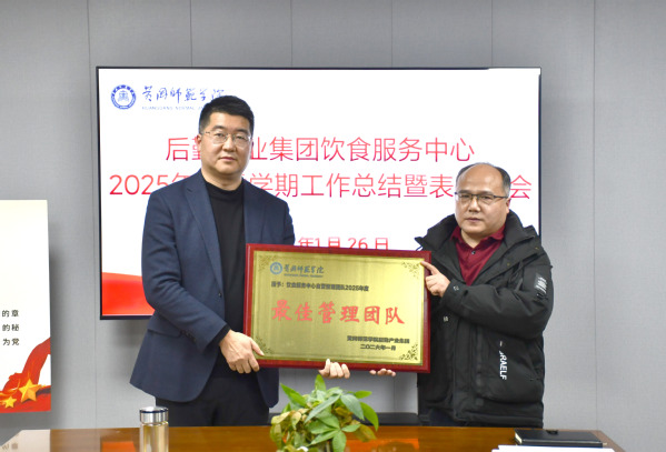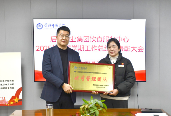 颁奖环节中,张章为获奖团队颁发奖牌。蔡锋宣读表彰文件,对在2025年秋季学期校园食品安全管控和餐饮服务提质工作中表现突出、成绩优异的管理团队予以表彰。