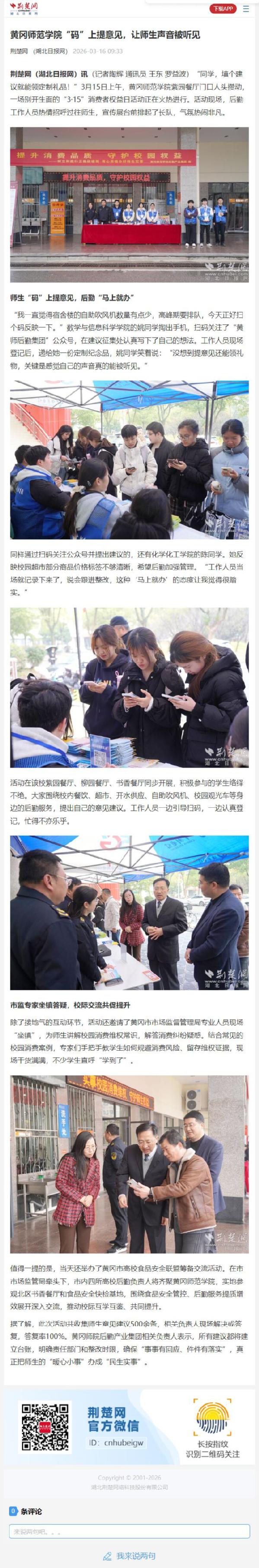 同样通过扫码关注公众号并提出建议的,还有化学化工学院的陈同学。她反映校园超市部分商品价格标签不够清晰,希望后勤加强管理。“工作人员当场就记录下来了,说会跟进整改,这种‘马上就办’的态度让我觉得很踏实。”